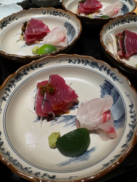 お造りは鰹のタタキと鯛